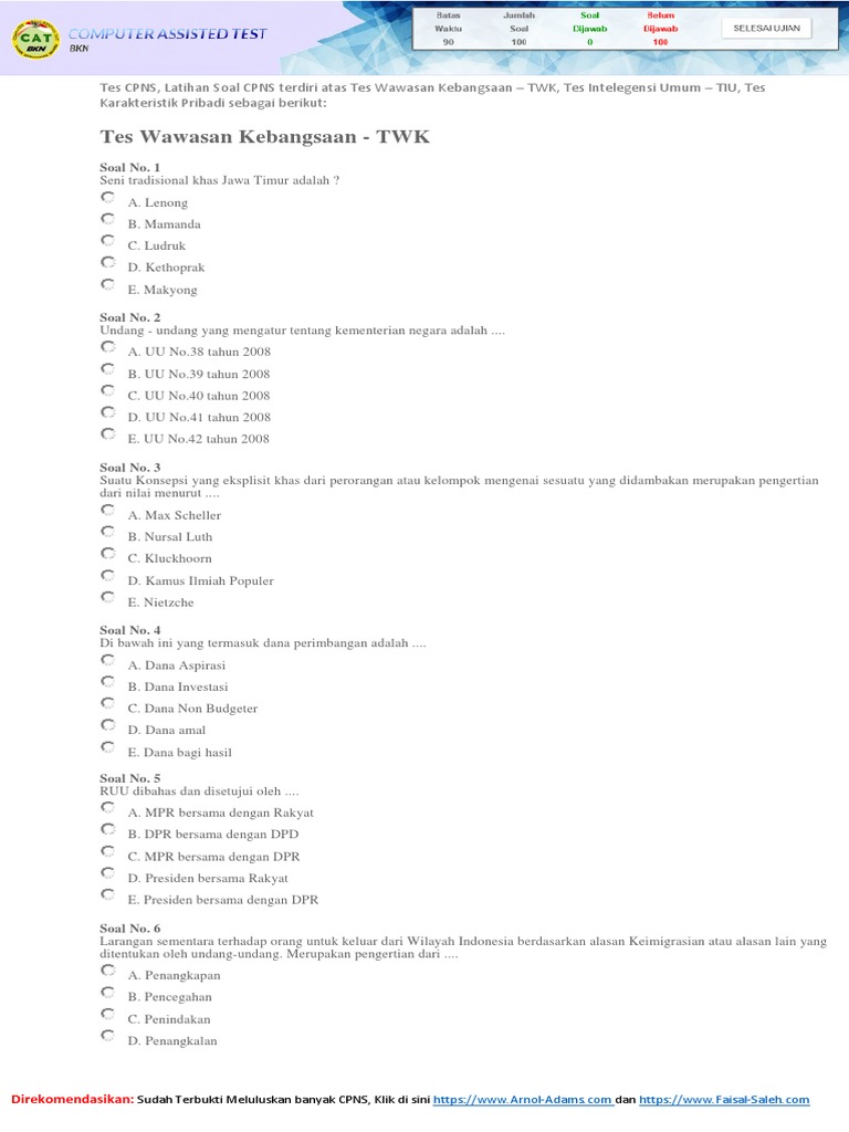 Video learning tiu cpns (41 seri mp4). Setiap hari, saya masuk kantor paling cepat dibandingkan pegawai lainnya. Jawaban, contoh soal cpns 2019 hots, ebook soal cpns 2019, ebook soal cpns 2019 pdf, soal evaluasi latsar cpns 2019, free download. Tes karakteristik pribadi (tkp) cpns online indonesia. Contoh soal cpns 2018 pdf wawasan kebangsaan.