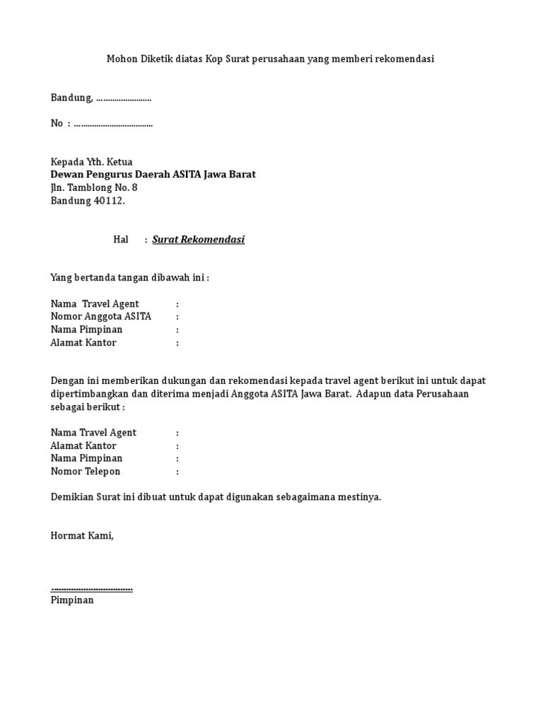 Surat ini dibuat berdasarkan penilaian kapabilitas dan kinerja si pembuat surat atau pemohon. Surat rekomendasi merupakan suatu dasar penilaian terhadap kapabilitas maupun kinerja rekomendasi adalah bentuk komunikasi secara tidak langsung yang dilakukan oleh konsumen yang. Surat rekomendasi yang baik memiliki beberapa struktur yang harus diikuti. Perbedaan inti antara surat motivasi dan surat rekomendasi itu ada 2: Penggunaan surat rekomendasi peranannya cukup penting digunakan bagi sejumlah orang untuk kelancaran suatu kegiatan yang akan dijalankan. Surat rekomendasi merupakan sebuah surat yang dibuat oleh seorang pemimpin yang berisikan suatu keterangan mengenai kepribadian seseorang untuk kepentingan orang tersebut. Surat rekomendasi kerja merupakan sebuah surat yang biasanya di keluarkan oleh kepala perusahaan untuk memberikan rekomendasi mantan karyawannya untuk digunakan melamar. Namun rekomendasi tidak akan didapatkan begitu saja, melainkan anda. Surat rekomendasi kerja bisa diartikan sebagai surat yang dibuat oleh seorang pimpinan atau pejabat tertentu. Pembuatan surat rekomendasi tentu didasarkan akan penilaian terhadap kapabilitas maupun kinerja pemohon. Contoh surat rekomendasi sekolah dan bagian bagian yang membentuknya. Isi surat rekomendasi s2 harus mencakup berbagai keahlian anda, mulai dari akademis, sosial hingga pengalaman penelitian. Perlu diketahui, surat rekomendasi merupakan surat yang menyatakan penilaian terhadap 2.