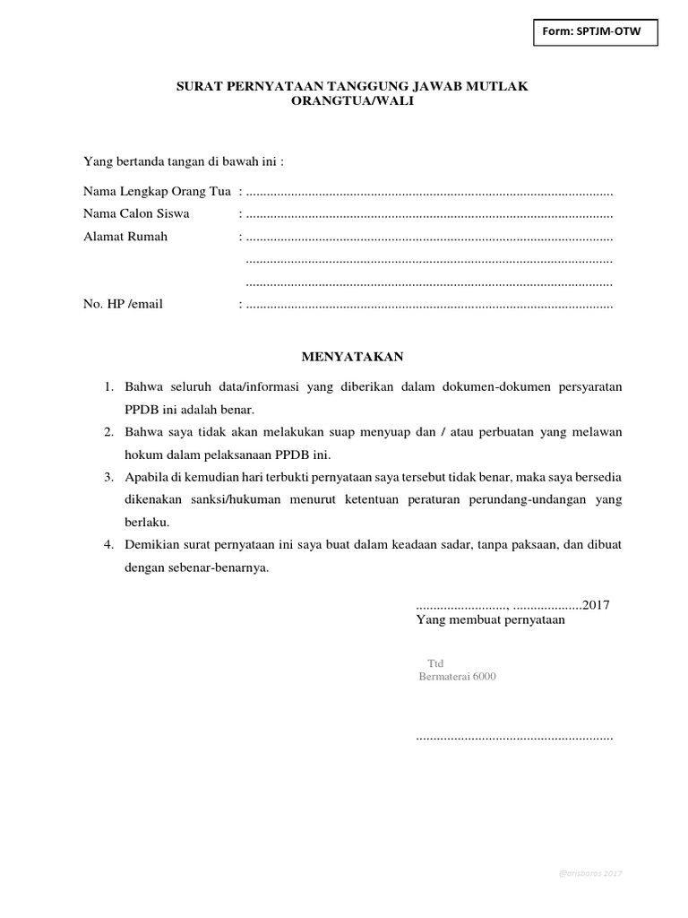 Contoh Surat Pernyataan Tanggung Jawab Mutlak | Belajar Office from www.belajaroffice.com Menjadi sarana atau media untuk berbagai pertanggungjawaban seseorang dengan lembaga atau perusahaan sesuai dengan hal yang sudah disepakati materai 6000. Sementara bagi pihak penerima, surat pernyataan ini bisa menjadi bukti kuat atau ibarat perjanjian tulis yang menjadi dasar permintaan pertanggungjawaban dari pihak pembuat. Berbeda dengan perjanjian yang dibuat secara tertulis, dimana sudah jelas tertulis mengenai peran dan tanggung jawab dari demikian surat pernyataan kesepakatan bersama ini kami buat dalam keadaan sadar, sehat jasmani dan rohani, dan tanpa paksaan dari pihak manapun. Seperti apa contoh surat pernyataan? Format / susunan surat pernyataan. Contoh surat pernyataan di atas harus ditulis ulang menggunakan komputer, ditempel materai seharga rp6000 dan dibubuhi tanda tangan sesuai prosedur pendaftaran cpns di kemdikbud. Contoh surat pernyataan adalah surat yang digunakan untuk menyatakan sesuatu kepada penerima. Bagi penerima surat pernyataan dimanfaatkan sebagai alat bukti meminta pertanggungjawaban.